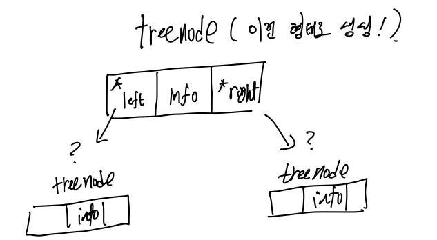 우선 treenode(binary tree) 구조를 미리선언해줘야한다. 어떻게 생긴지는 알아야하지않읂가. struct 라는 member 선언 함수인데 이때 안에 또 struct가 불려지며 treenode가 생성되는데 이때 포인터 형태로 구성하여 왼쪽 child 혹은 오른쪽 child로 지칭가능하게 게 선언.