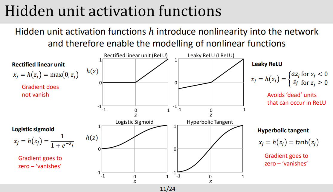 - z 는 아웃풋 , x 는 인풋, w 는 가중치, b 는 bias 라고 이해, h 는 hidden activation function의 약자.