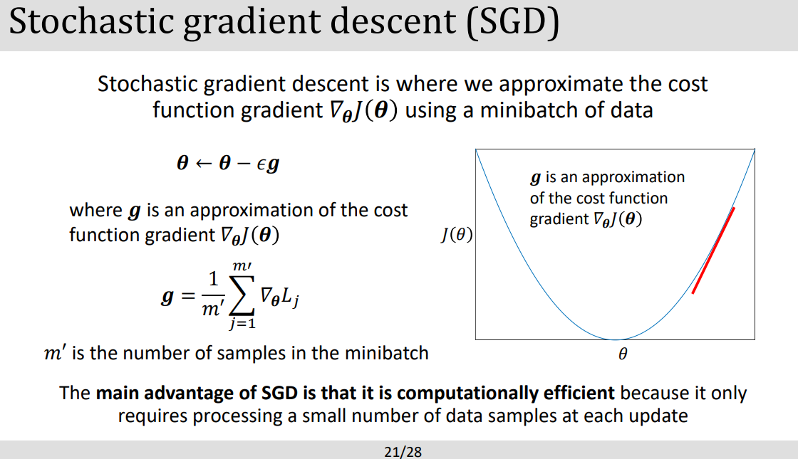 - batch 가 작다 => 노이지한 기울기 발생한다, 적은 데이터에 트레닝 할수있다.