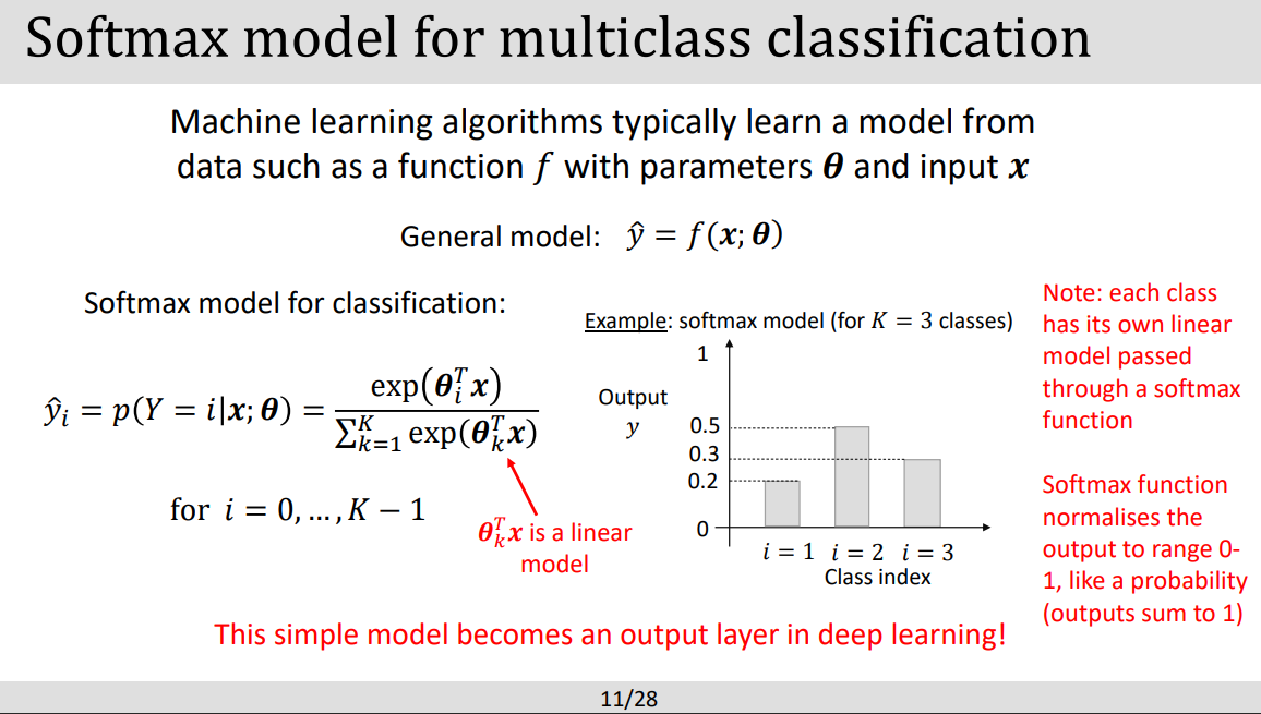 - softmax model 은 튜토리얼에서 다뤘던만큼 중요. 역할은 output을 0 혹은 1로 변경해주며 각 클래스에 대한 예측 확률값을 계산시 사용하게 한다. 반올림역할 ex 0.3의확률가진 클래스라면 0 으로 바꿔버림.