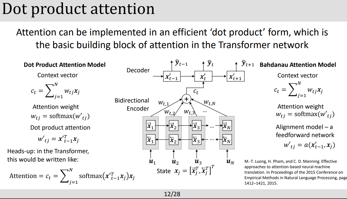 - Attention mechanishm은 transformer에서 굉장히 중요한 역을 하는데 이는 각각의 연속적인 인풋 들에서 각각의 요소들의 attention weight을 계산하여 무엇이 중요한지 파라미터를 업데이트한다.