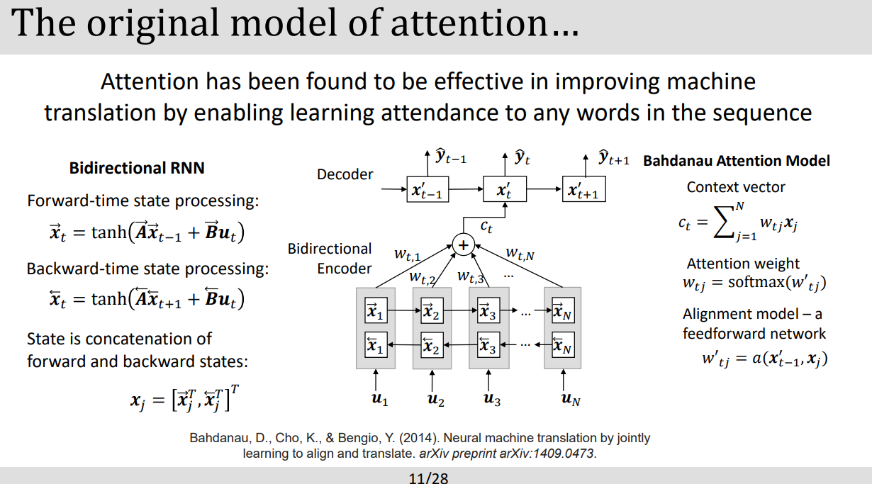=> attention mechanism은 연속적인 값들의 연관성을 찾아내기위한 방법이라고 볼수있다.