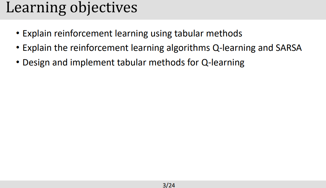 - Q-learning은 보통 tabular method를 사용한다고보면된다.